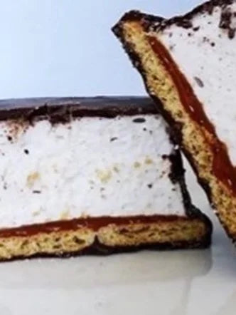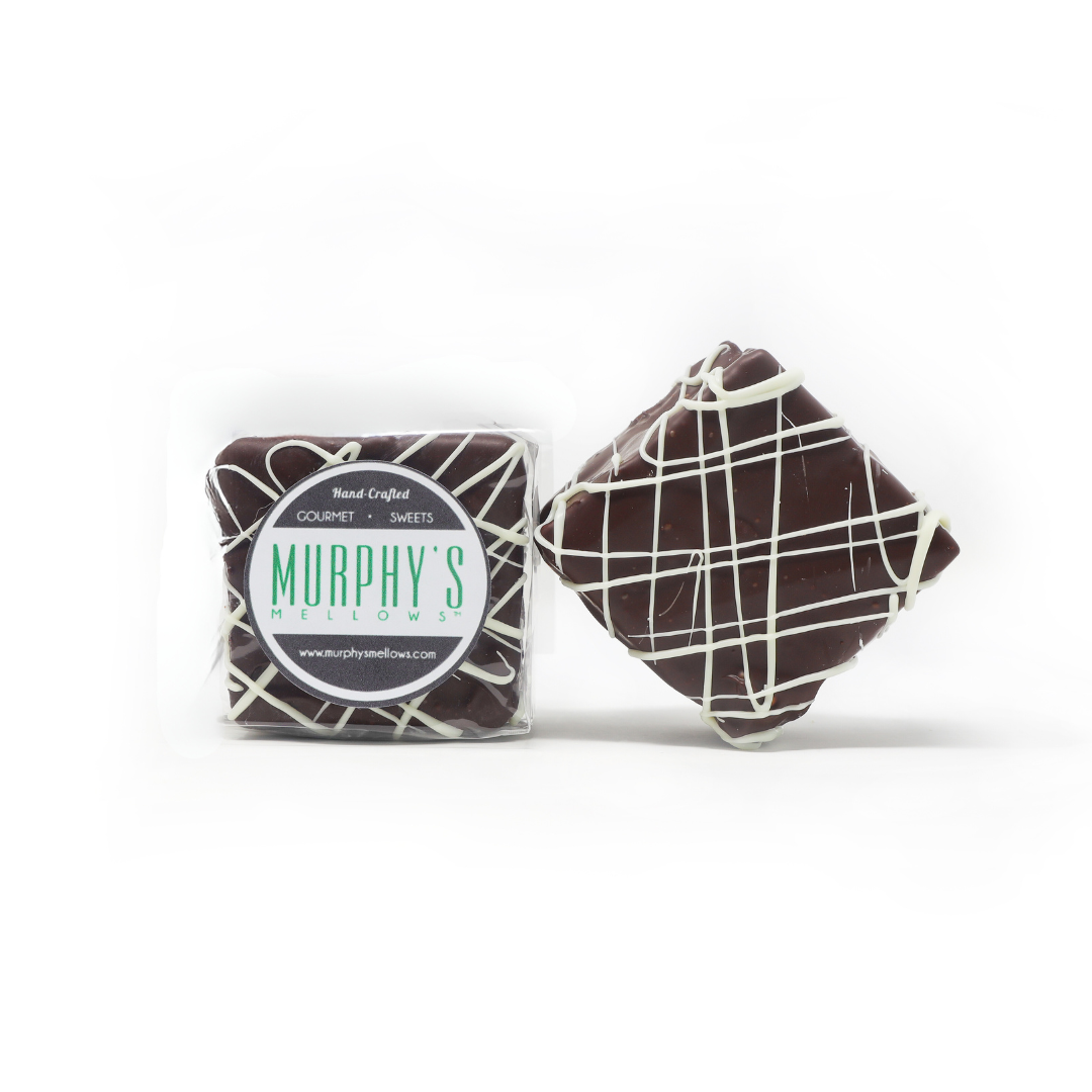 The fastest S’more we sell! All you have to do is open the package and you are ready to take your s’more on the go. We start our Original Texas S’more with graham crackers drizzled with our handmade Caramel Sauce and topped with a fluffy square of Vanilla Mellow. Then we dip the whole thing in dark Belgian chocolate with a drizzle of white chocolate for fun. The Original Texas S’more makes a great grab and go snack to satisfy every sweet tooth.
